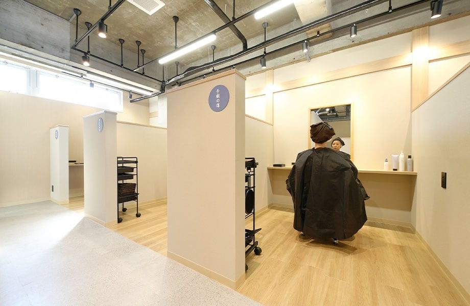 半個室なので、染めている時に頭にタオルを巻いた姿を他の人に見られないで済みます。